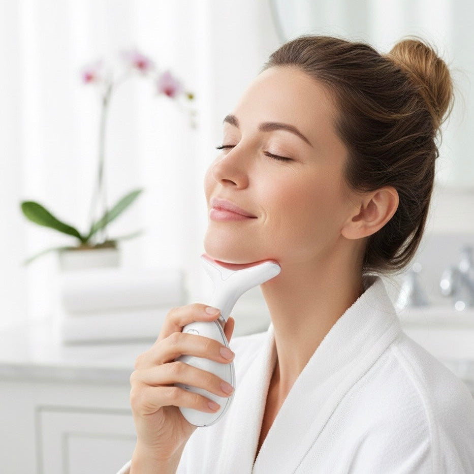 Unlock the secret to a firmer, younger-looking complexion with the advanced anti-aging device designed for both your face and neck. Utilizing a powerful combination of micro-vibration technology and LED light therapy, this ergonomic sculptor targets signs of aging, promoting radiant, contoured, and revitalized skin.